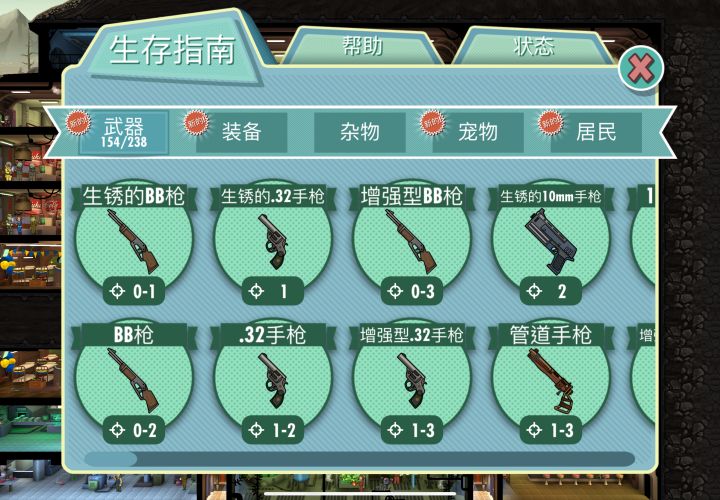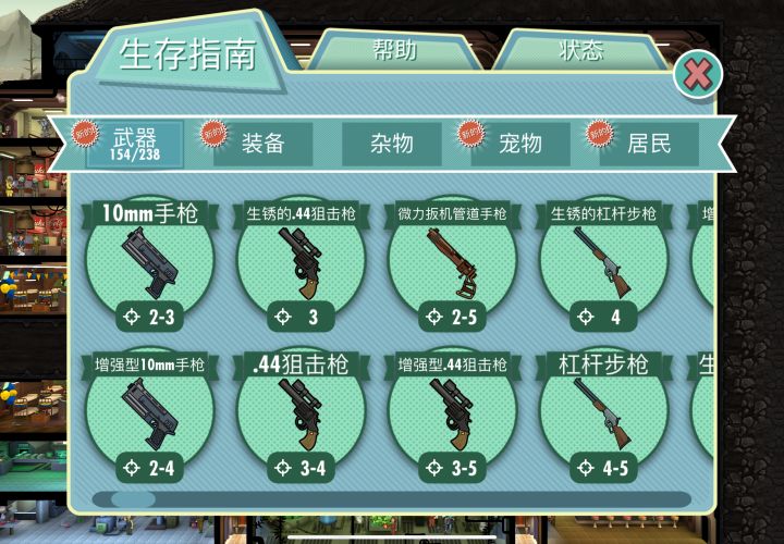 一共26种绿色武器,如上图,为大家提供参考 #辐射避难所