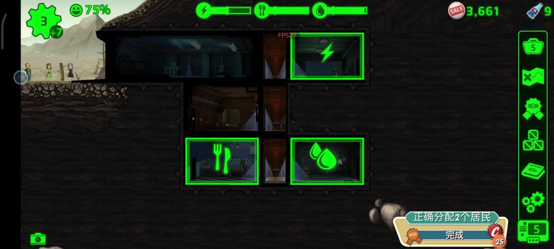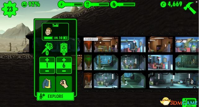 生存模式技巧:1.卡人口35(34就行,一个宿舍升级刚好34,为什么这么做,方便让E房小人全部怀孕,等于无敌,不用来天灾拉来拉去,还容易死),因为36就来死爪了,在你属性都不行等级不行的时候,可能不会死人,但是药扛不住,压力太大。 2.开2个E练级室(不升级,效果不明显,还挺贵,还增加费电量),加快前期满10E小人速度。3.餐厅3人(负责入侵,顺便刷装备和图纸可以出5e图纸),水站3人,电站6