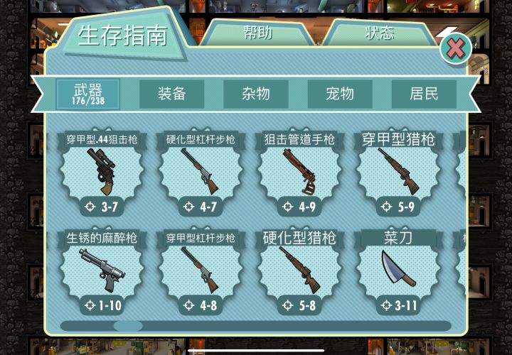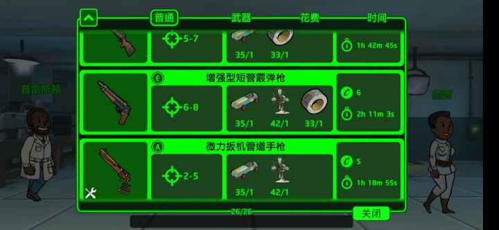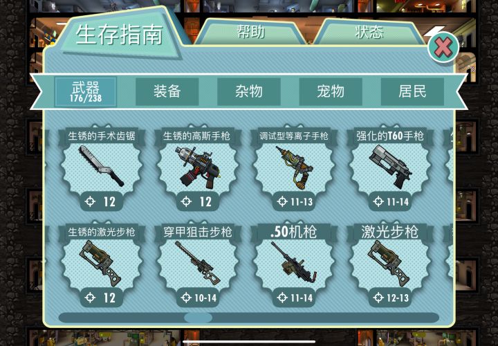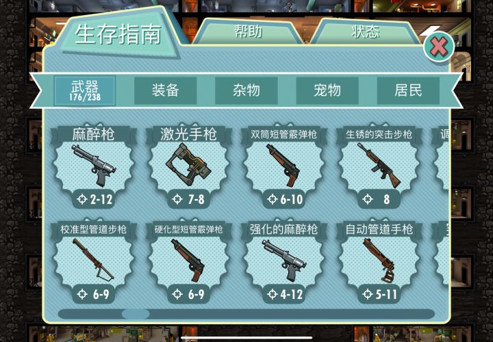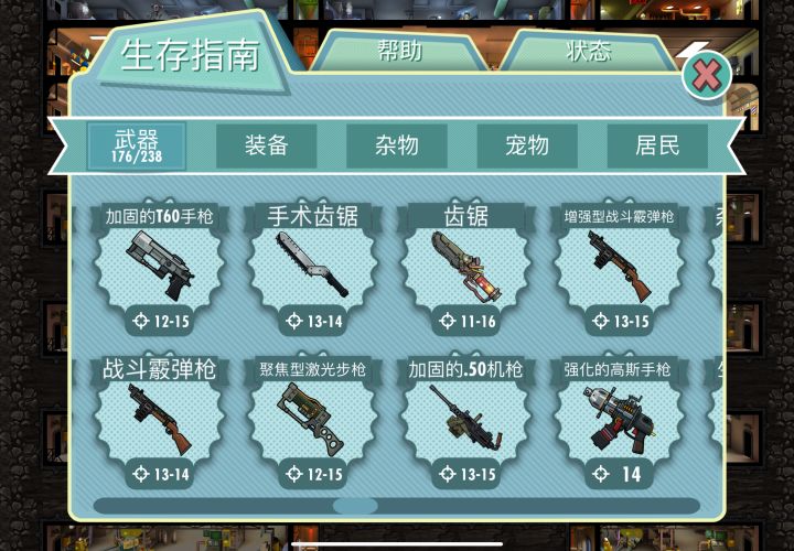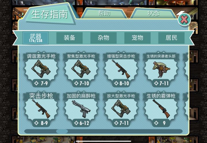 开荒期:有啥用啥,出了医疗室和研究所就放个小人出去探险,睡一觉回来就有很多武器了>前期:等可以造武器工坊后就造以下两把枪增幅霰弹激光手枪有高攻击就用高攻击,以上两把只是为了全员有枪才去造>中期:等45人口升级武器工坊就可以造稀有武器了首先是大家喜闻乐见的等离子和高斯步枪高斯的话开始只能造生锈的,普通的要图纸(我也没有图纸)普通的伤害是16-17,所以说等离子还是会好一点,建议材