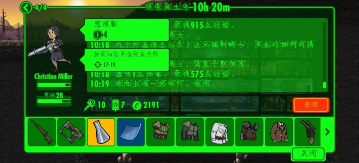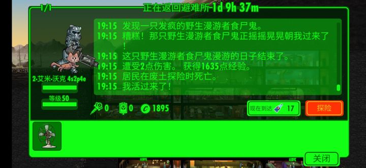 30个小人后剩下小人全都在训练,现在已经有六七个满E的了,其他属性因为有一个婴儿加二全属性的宠物所以也在4-5左右,目前是六七个属性比较一般和抽出来的小人在外面探索,但感觉坚固废土服的图纸真的不好弄。#辐射避难所