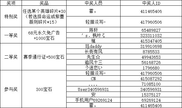 【开奖公告】说出你最喜爱的英雄活动开奖啦!