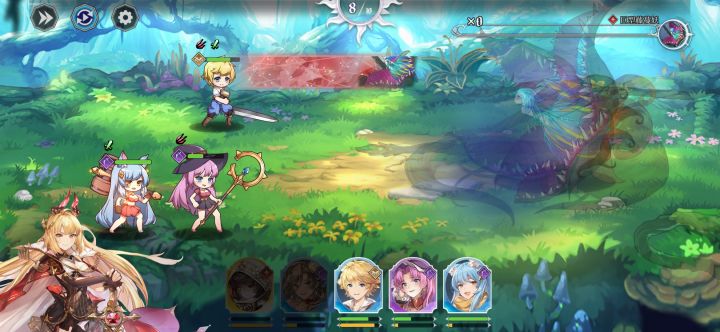 阵型大概这样,把最肉的丢前排奶妈放中间保一下肉的血量给输出拖时间输出,放中间是因为奶妈十字范围奶,而boss技能伤害是t字的所以丢中间还能让队友吃攻击buff。虽然过了不过怎么说呢,就一个游戏来说这初始boss太容易卡关了,希望能做点优化吧