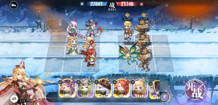 《月神的迷宫》于11月26日10:00正式开测,看到不少登月者们都在讨论游戏难度的问题,贴心的阿月酱就给大家带来新鲜出炉的攻略,希望能帮到大家更好地畅游银月世界啦~今天阿月酱想跟大家介绍的是蕾这一角色啦,虽然并不是SSR,但是在前期过关斩将上可是非常好用的喔~(๑•ㅂ•)و✧举个栗子:这是关卡3-4,我方战力是20K-,对面是23K,具体阵容如下:这种五星站位我们没办法AOE,对面后排两个