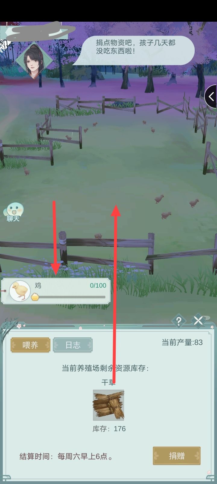 各位承包了记得浇水!!记得喂鸡!!!记得喂鱼!!!!作为一个村长,我看着快饿死的鸡和鱼,还有快渴死的棉花,大半夜开始给我的村民们挨个写信告诉他们浇水喂鸡喂鱼为了造福其他村长,在这里跟大家说一下怎么承包了要怎么养。不是承包了就完事了,还是要养的!!!看这两个↑↓,种植养殖都有饱食度,饱食度没了说明你该用库存喂养了,如图所示上划库存即可喂养。此处只是拿这个图做示范,种植和养鱼同理。不是补了库存