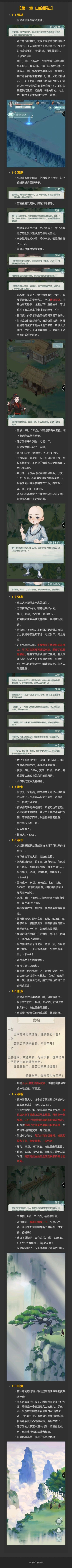 自用,所以记录得比较细碎,侧重于记录有意思的剧情。感谢大侠们的补充!关于剧情更新后的第一章,好像就是阿眸说话没那么冲了,其他改动影响不大(可能我没发现),没必要重新走。侠士须知在最底下,长图看不清的话点开看会好很多哦!三测快结束了,村民们在线的越来越少,该卡关还是卡关…那么下一个江湖再见吧~