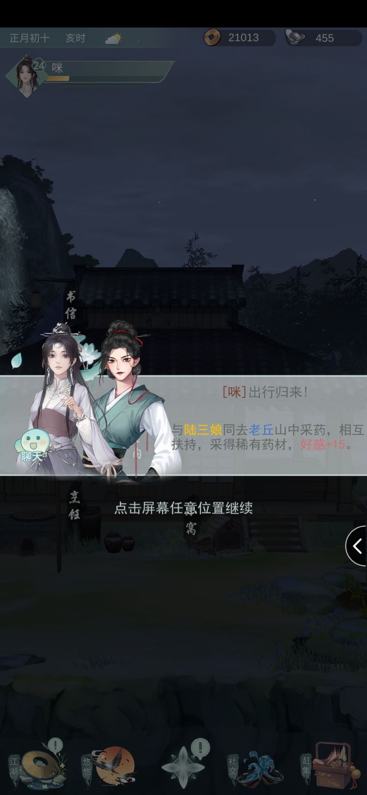 本攻略目的在于研究解锁NPC访客的事件、地点有无规律可循。目前已知部分事件有概率触发NPC同行,而成败应该不影响,地点是否固定就不得而知。收藏里的NPC事件只展示成功的画面(尽管失败了)。希望能得到各侠士的补充!!!救救孩子吧,孩子解锁的NPC真的好少!【总结篇】陆三娘:豫州老丘上山采药。风花雪月。楚万卷:豫州老丘庙会淘宝。温舒谣:荆州襄阳山林打猎。风花雪月。三公子:兖州英雄救美。方