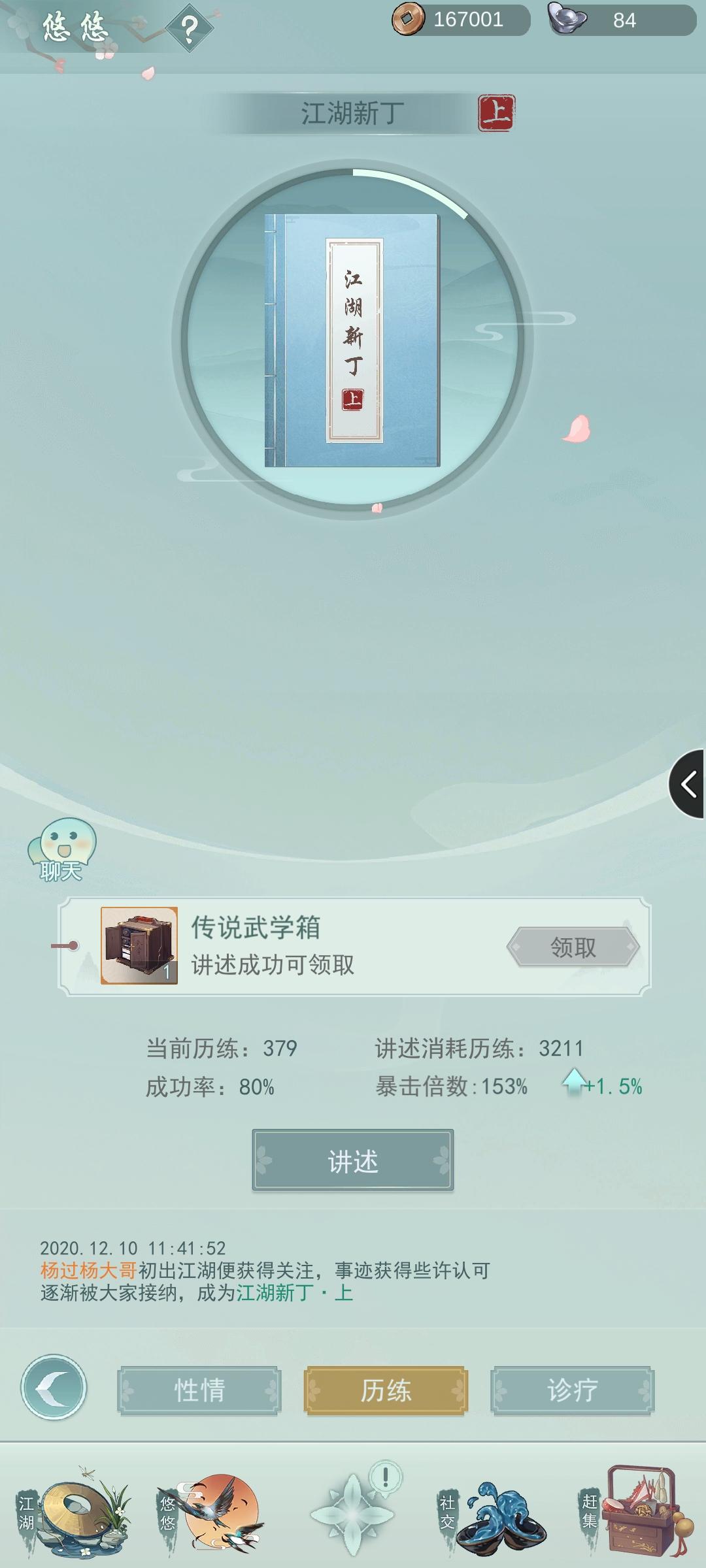 想到了,现在都为了武学,门派吵来吵去,既然是以【探索】为核心的,不如把武学获得途径改为探索吧,出去的时候偶遇加入了什么门派,下次出去随机做任务,然后获得门派贡献,用贡献点换门派武学!有没有一种小说主角的感觉?要是叛门会有同门师兄追杀什么的惩罚,或者回收武功的惩罚,大概这么个思路。————当然,就是开个脑洞,估计不可能这么做