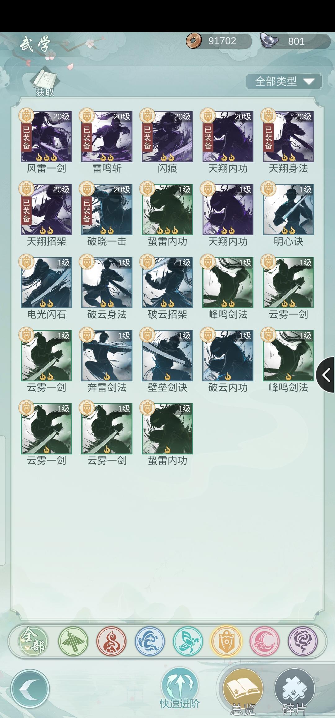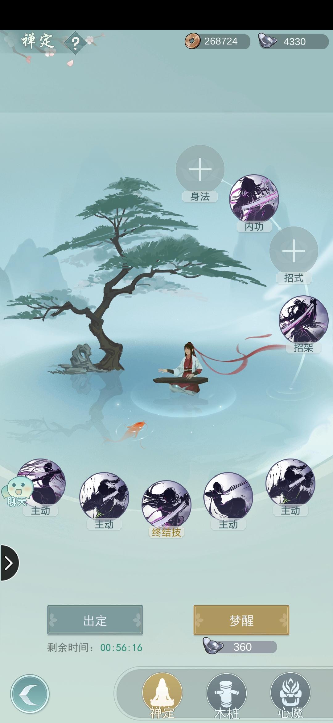 今天入定,然后点红鱼的时候,我所有的武功都消失了。我琢磨是不是我网不行,就没截图,退出重新进了。结果,好家伙,给我下面主动技能补全了???我就练个锁月,其他的还能强制让我练习的?