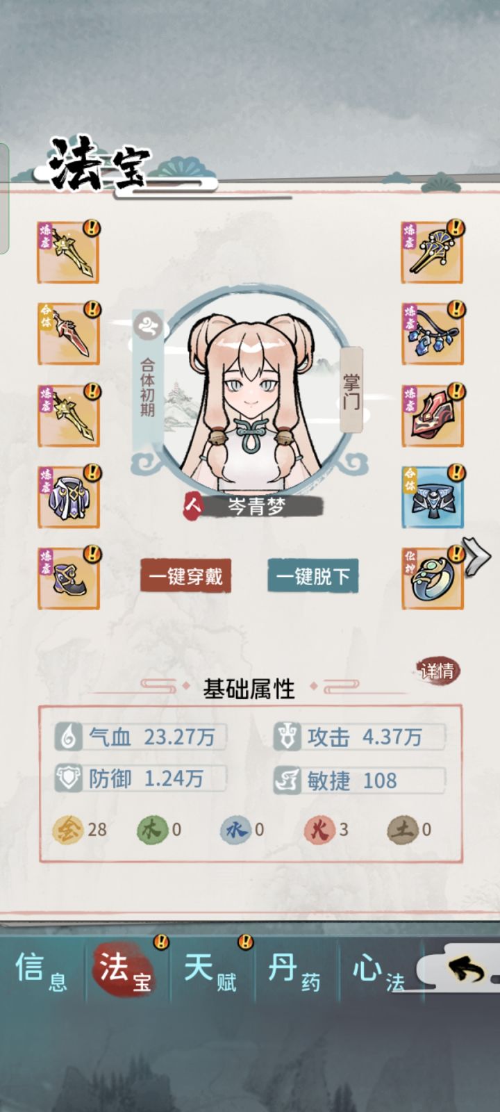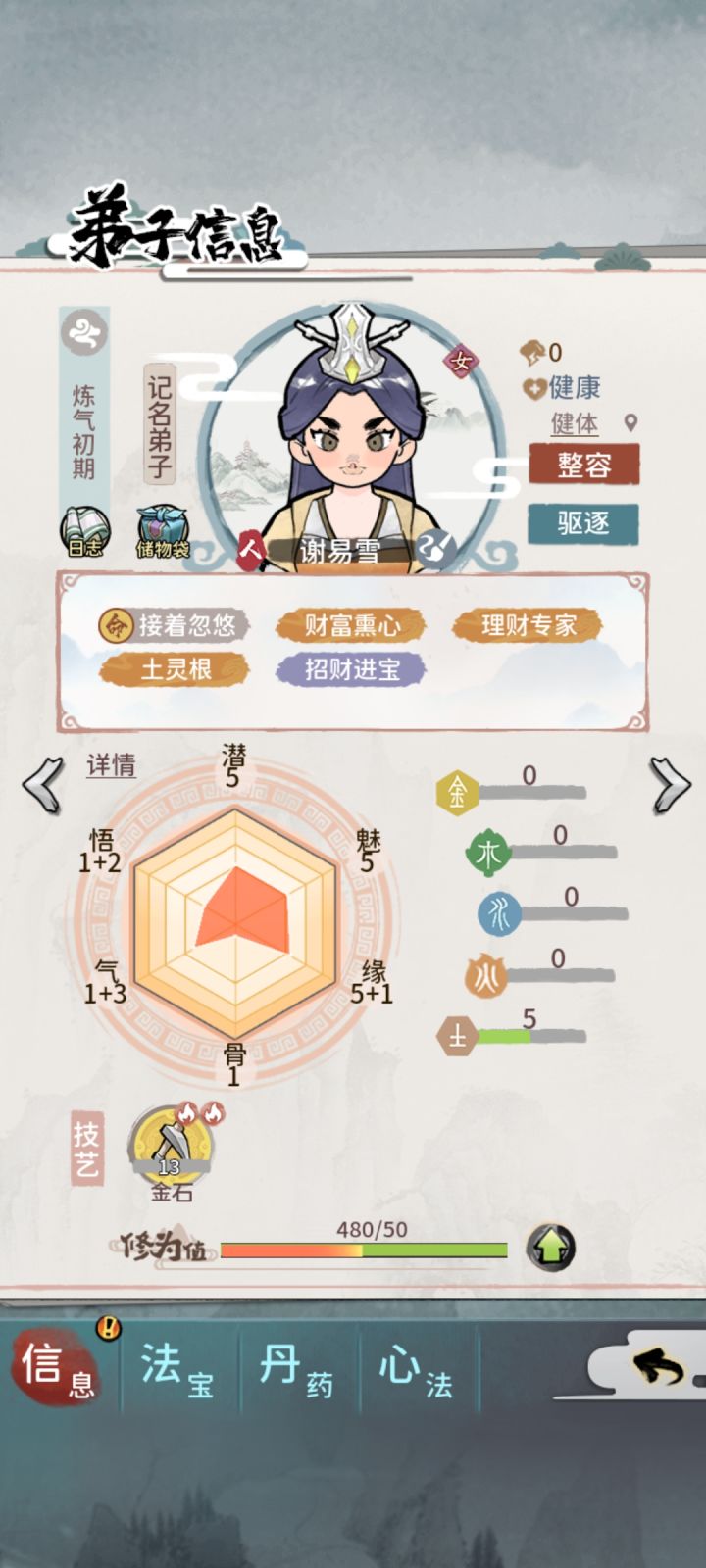 师妹其实不着急刷词条,与其耗费大量灵石刷不然留着升战力,刷有用滴词条。潜力 0-5 境界上限为金丹大圆满潜 6-7 元婴8-10 化神潜11-12练虚 潜13-15合体潜16-17大乘潜 18 渡劫