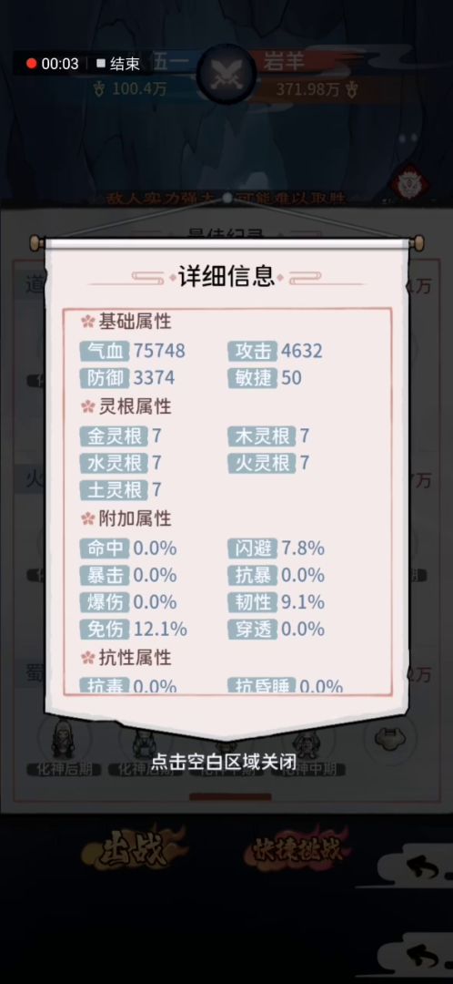 终于打过岩羊了!发一下平民攻略阵容:两个化神大圆满两个化神后期一个化神初期共95w战力关键装备:两个加敏捷的装备,带眩晕的印,减防御的锤子,单体回血的鼎,吸血刀站位:奇门阵法左上:副C,我的是小师妹右上:主C,我的是掌门中心:buff辅助,我的是劝降的龙雨旋左下:奶妈,我的是大师兄右下:眩晕辅助,我的是招募的顾楚羽打法:核心是要给两个辅助换上加敏捷的装备(我一开始给