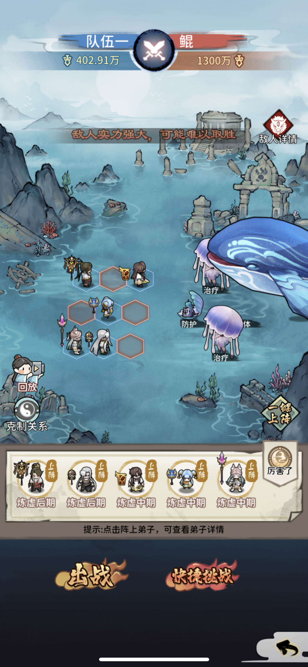 主T为掌门,带全体免伤,输出全靠邪修带金幡,小师妹给水锤活得久,大师姐和另外个打手是木属性,给啥都比较鸡肋,随便哪个一号位上土枪可以破防,这俩人物叠木属性我发现被boss一拳就打死,毕竟金克木不好打。就剩下几个boss没打了,有点难过,主要是靠金幡和免伤盾外加个土枪破防,防具类装备能上免伤和闪避尽量给。