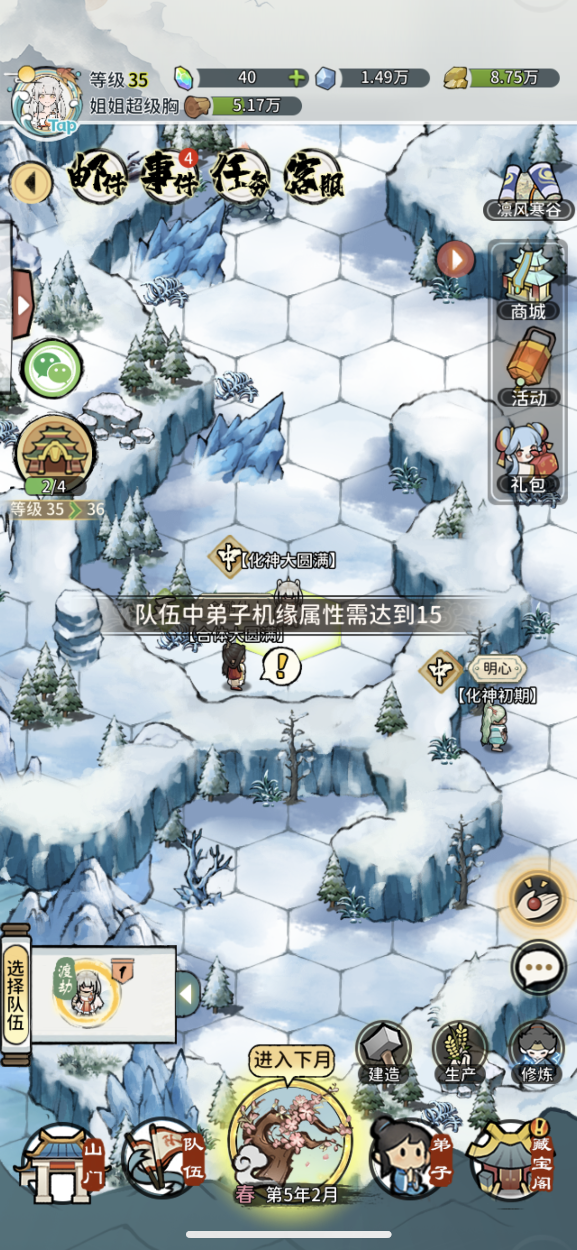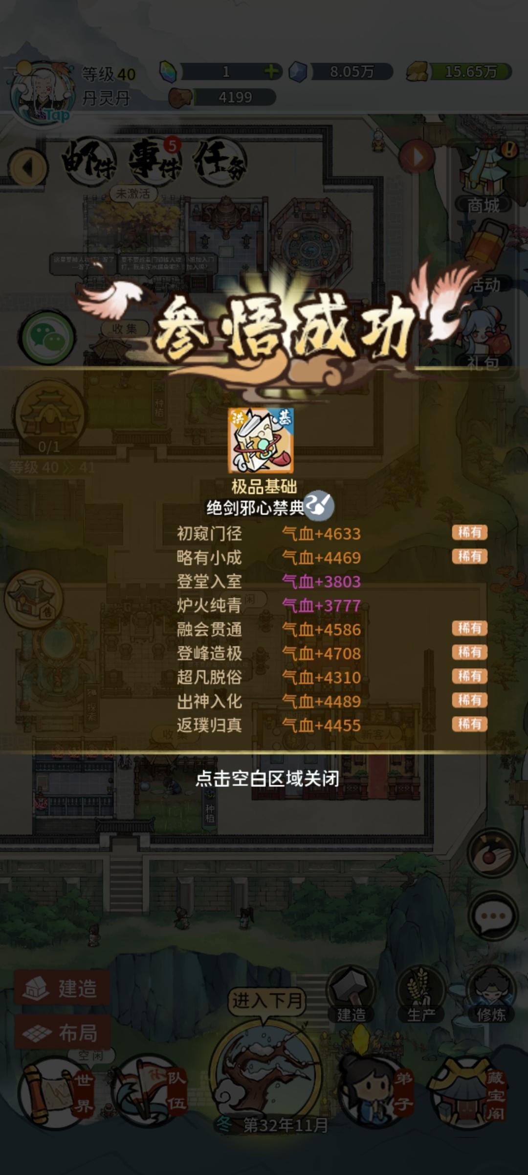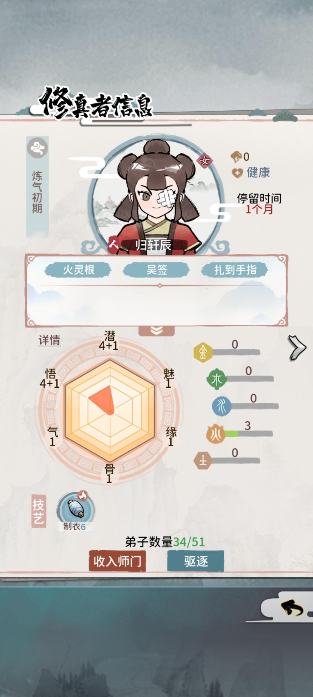 今天改了招募等级限制,很多人突然不会玩了,我花了挂1小时木桩时间来写这个攻略。首先开局主角一定要武道+先天,这样才是最强打手。输出一个6维9弟子再开局,接着氪198买大师姐,这样就有5个6维战斗人员了。再氪一发648礼包,弄出炼器炼丹10的弟子用着先。到了元婴还没有炼丹炼器巧匠制衣15的弟子的话,氪一个648刷出来,不然很难受呢。然后每年8月拍卖行需要拍神通,500仙晶上下一本,必拿。不