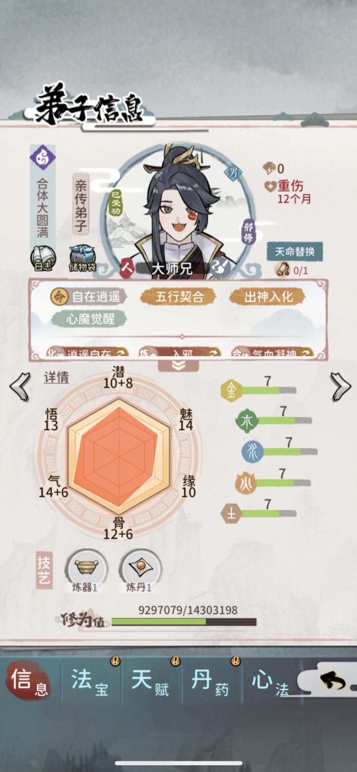 这游戏玩了两周,已经基本明白是一个披着修仙经营的卡牌游戏了,卡牌游戏的特点就是没有特定的人权卡玩不下去,这游戏同样如此。弟子的技艺、潜力限制了你很多玩法,甚至境界也卡死了,而平民通过刷月份根本拿不全所需弟子,大多数平民在合体期就玩不下去了,玩家的流失不可避免。而氪金玩家也分三六九等,小氪玩家也很不舒服。目前能解决困境的有几个方案1.刷月份出高潜力弟子,或者地图上出加潜力的道具,或者干脆取消潜