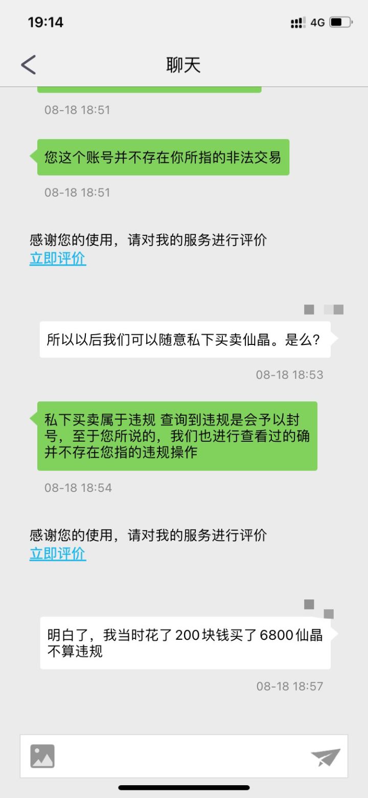 之前官方说鼓励搬砖,然后搬砖的那些人号就没了,官方的解释是不能私下买卖道具,游戏货币。今天我用买卖晶的记录举报自己的号,竟然都举报不成功,说是经检测没有违规。