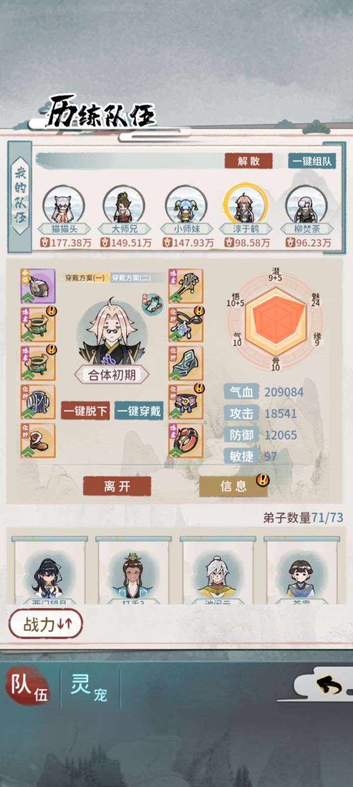 哎还是打不过图一是掌门输出,图二大师兄(水盾金刀水盾,水盾敏捷。打第一门派首领运气好能撑到第三回合,运气不好第二回合普攻就招架不住😂因为奶的速度没那么快。只能做高五行装备了吗?