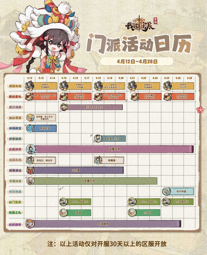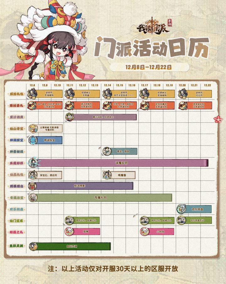诸位掌门好呀!小师妹带来了本次的活动日历,快来一起看看吧——