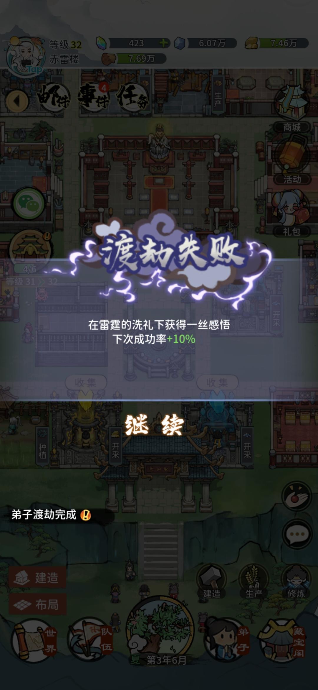 第八次渡劫失败,大师兄80概率也失败,680招募连续两次都是12木,真就恶心人,卸载了,搞人心态