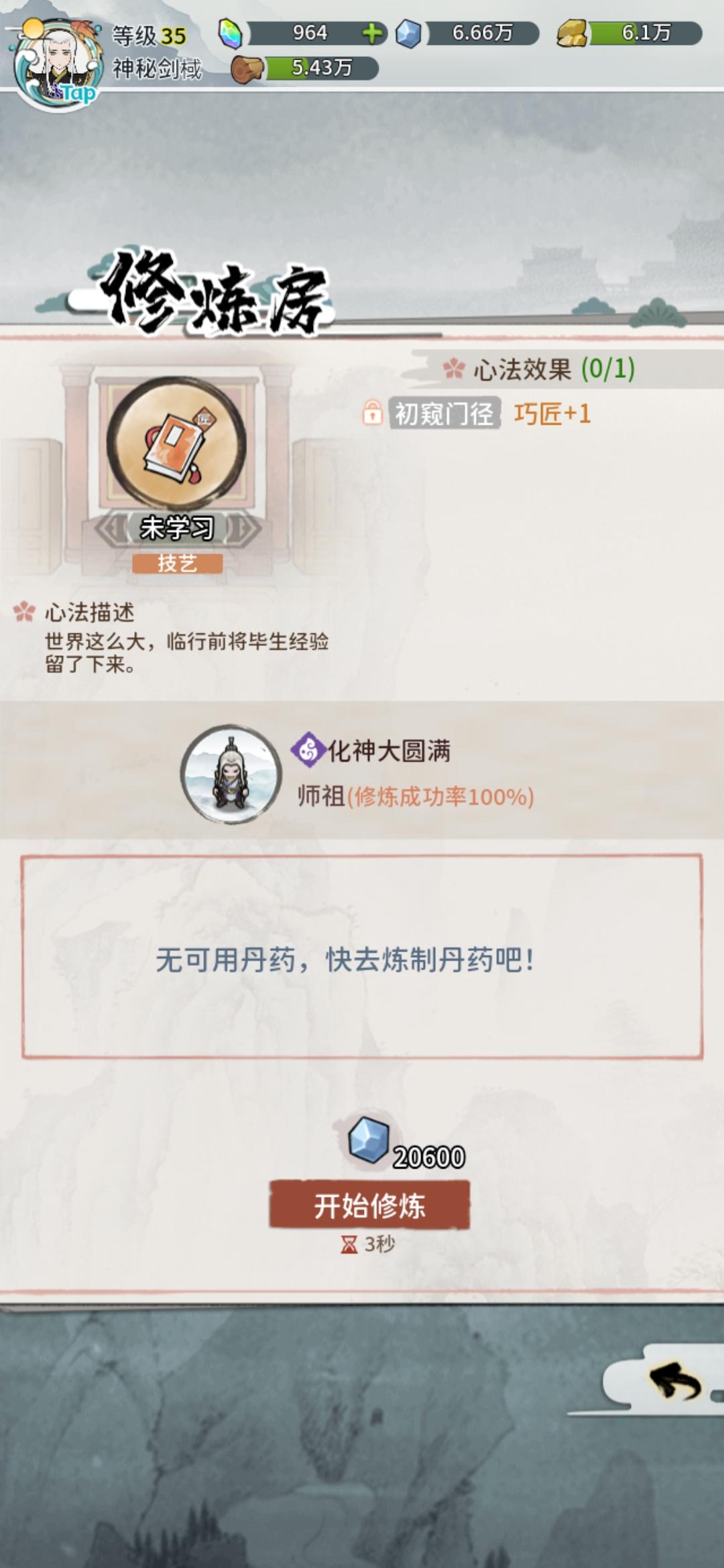 感觉炼丹20,15没区别,也不加什么东西,就是能炼的丹的上限不一样,这不太合理