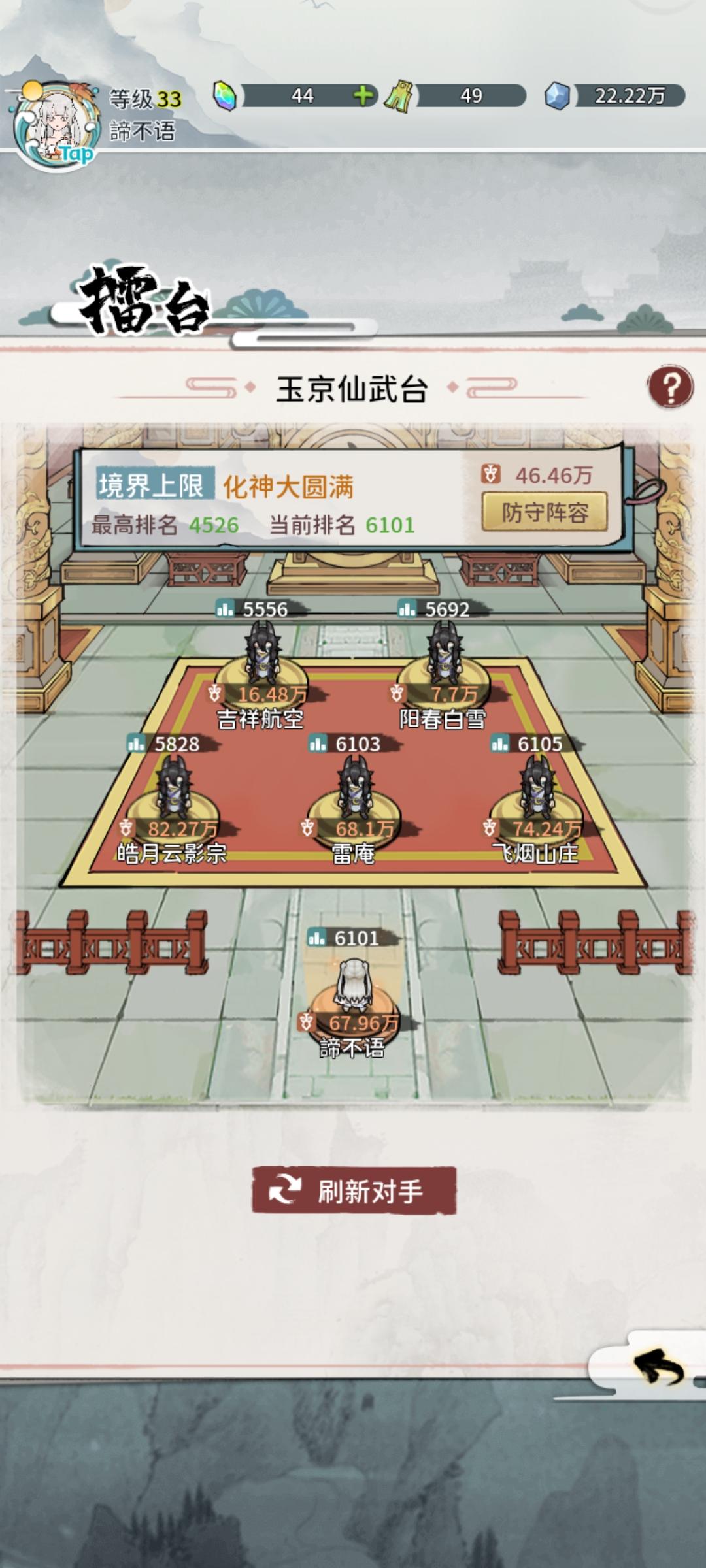 666啊,仙武台显示16万战力,退出去看对战记录就变73万了