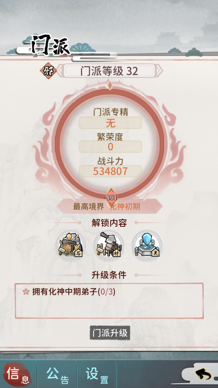 这是什么鬼?仙武台,我掌门没有攻击力。还有我传功直接掉一个小境界?我化神中期传的传过去之后,就只剩一个化神初,这还玩个屁呀,传功的这两个还是后面才招到的。一天到晚打木桩算了,玩的闹心