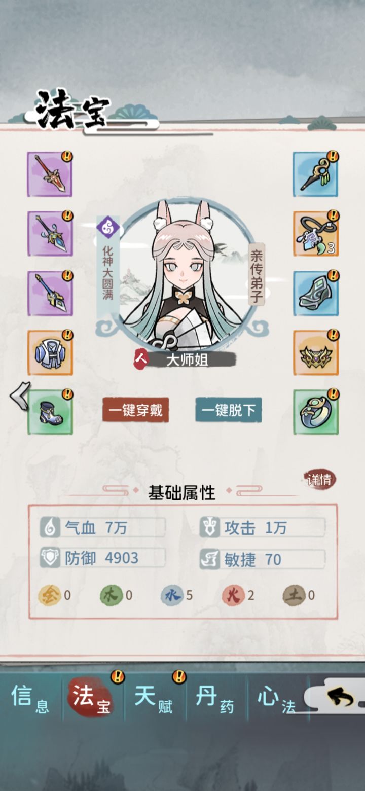 这娃的技能伤害高的离谱。没有五行或者血量没跟上直接秒杀。。所以我打这个娃的核心思路也是必备条件就是1,你队伍起码得有两个能吃下他一个技能的娃,一个成功率太低。2,因为我们顶天也就两后期化神,要想赢还有一点就是必须有一个人带着敏捷精魄带晕印(三晕印莽!)3,第一回合必须得有能力把他前排全清。以下是我过图配置,两化神后,三化神中,最高攻击7700,我觉得我这个真算得上低配了,因为几乎打死这货刚