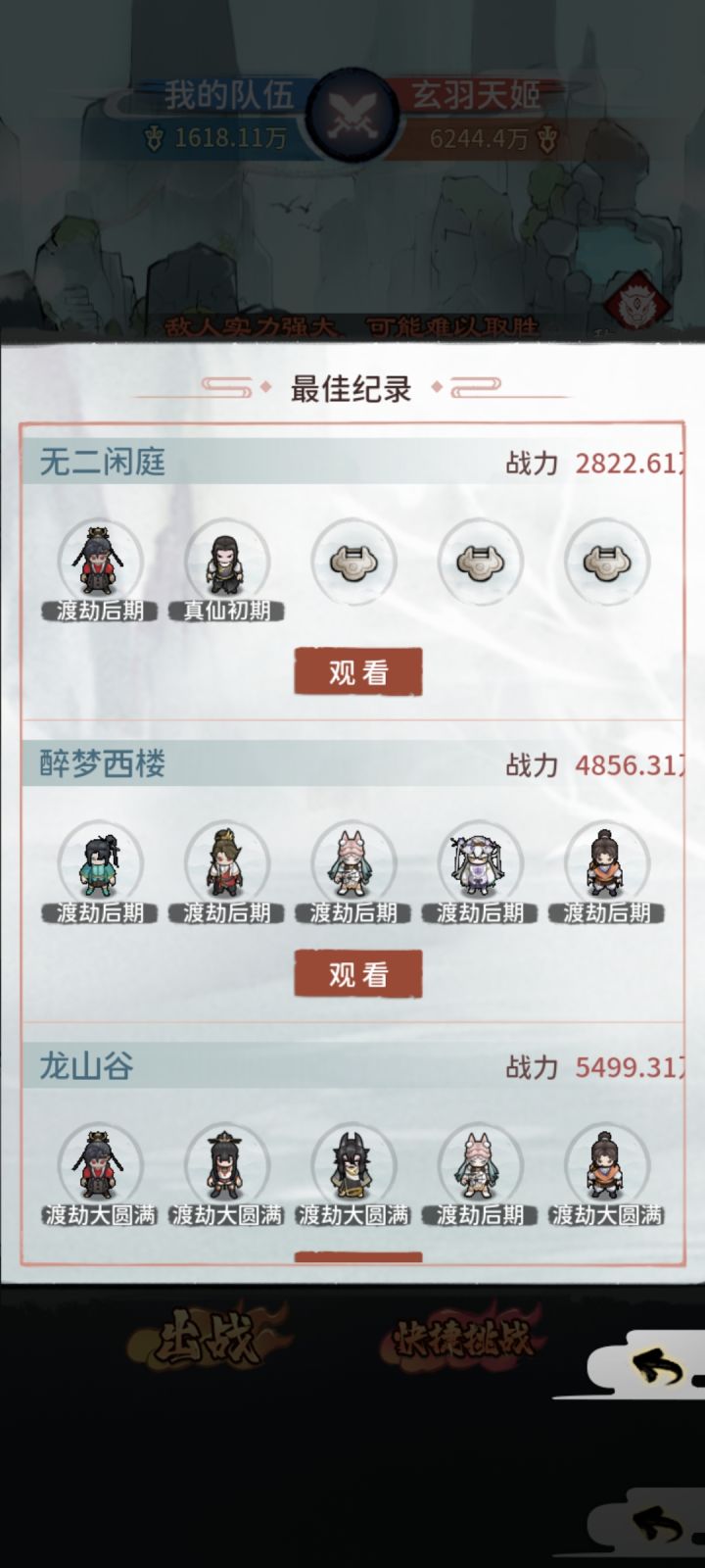 二、星域幻境,现在幻境的一键扫荡功能,很好的给工具人吃经验,不用战力,只要境界到了,上五工具人,扫对应的幻境就能过关得经验。