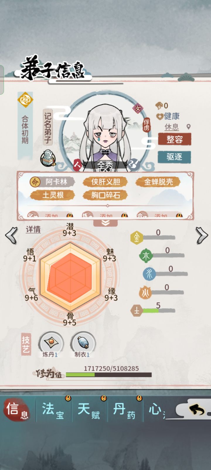 2.如果运气不好,化神练虚合体,洗词条,技艺加一的留着,若是中途出了+2潜力的,就留着,这时候的潜力是17/18,技艺17,到大乘了再洗一个+1词条,技艺就18了,达到毕业条件。