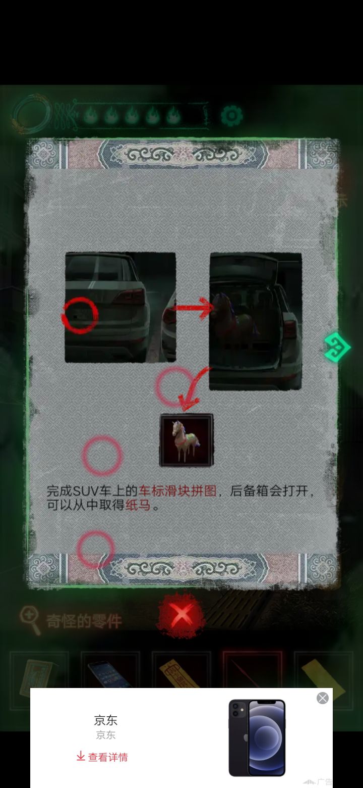 我卡住了之后点了提示,提示是让我完成车后面的拼图拿到马,但我是卡在了找不到车这件事上,这个提示不能把车在哪里也写出来吗