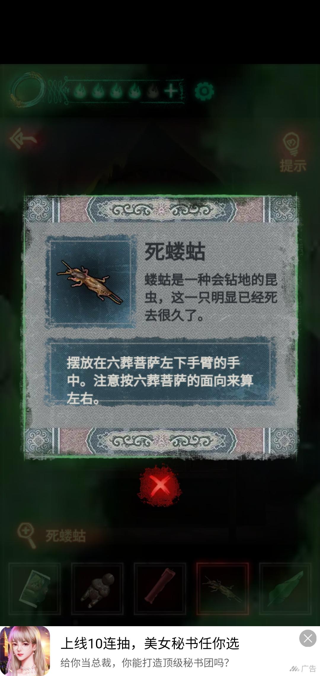 六葬菩萨那里有bug,四个手上的东西乱放,在拿下来的时候,就会卡住不动