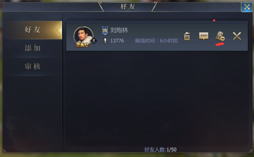 兄弟多者得天下,和各路小伙伴们广加好友,每日互送军令,切磋,国战路上有人相伴