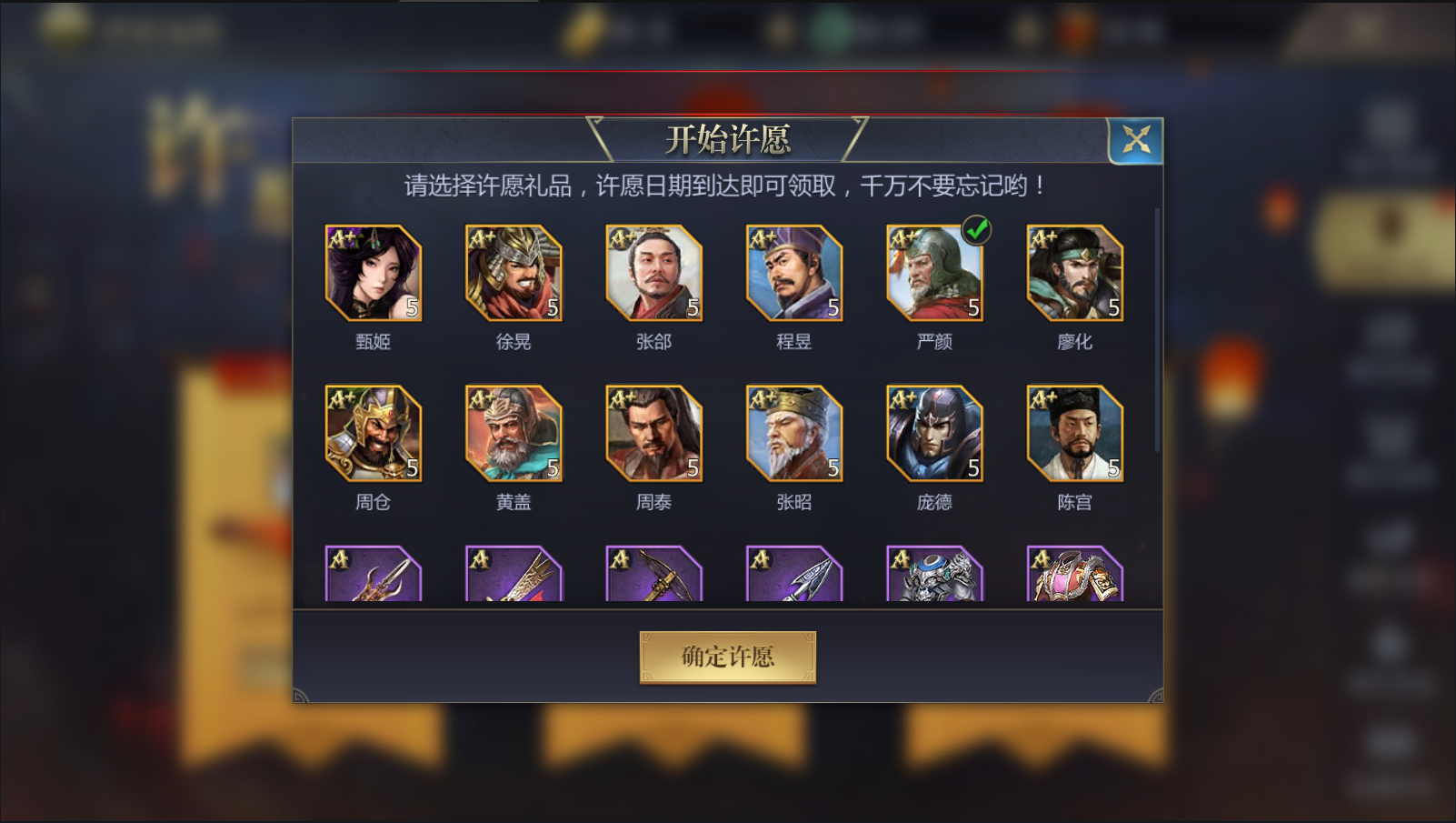 许愿有礼选择自己喜爱的武将,许个愿吧😂。