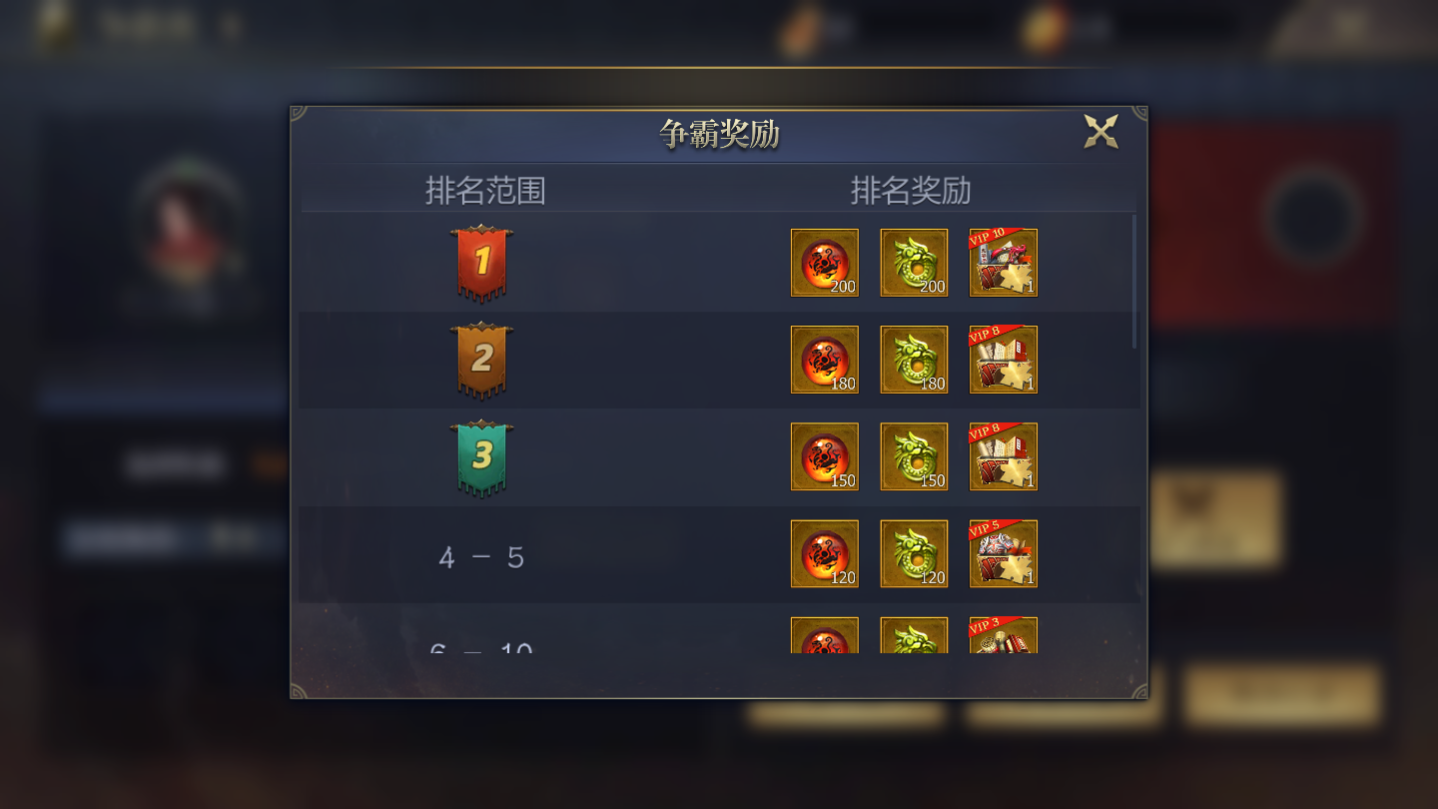 争霸赛每天都有排名奖励可以得,所以平时要记得打一打