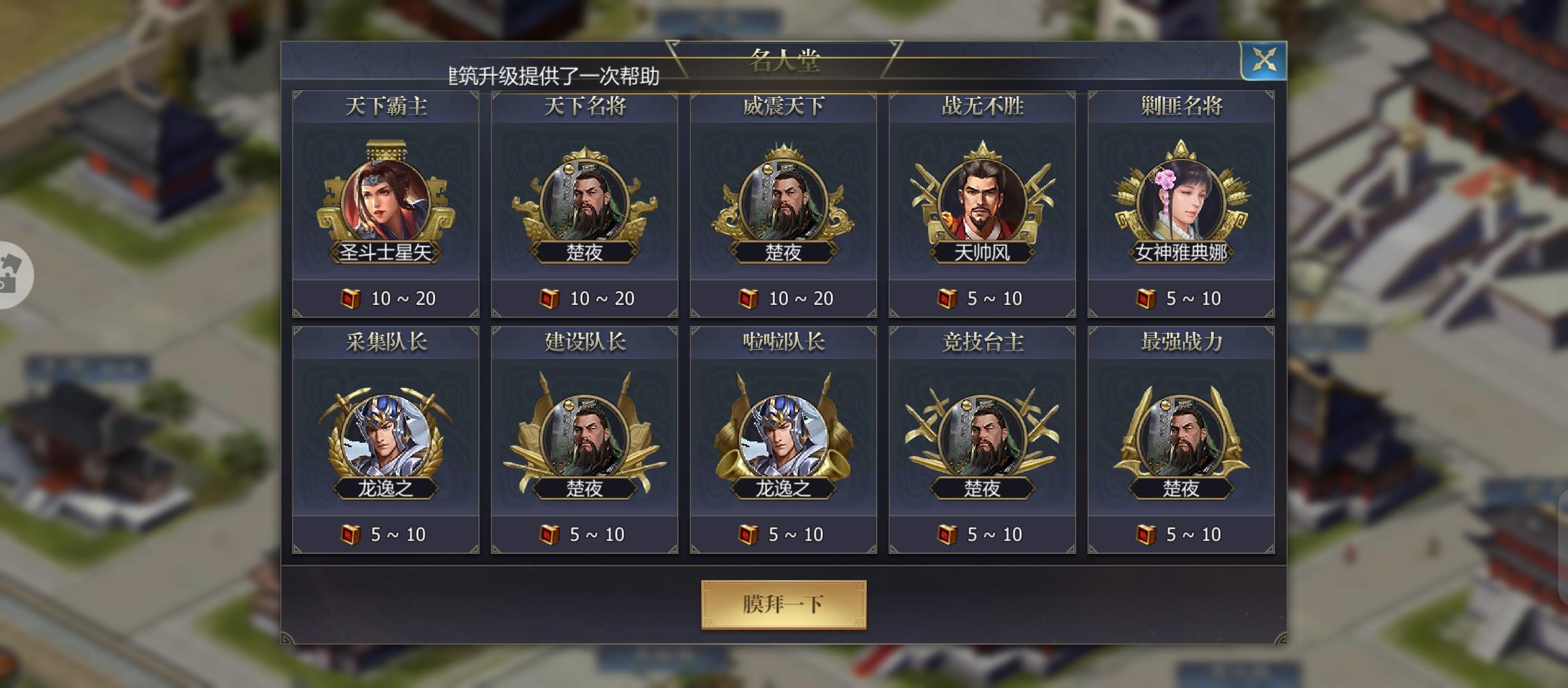 名人堂代表了玩家追求的称号,看看自己喜欢哪个称号,努力达成吧