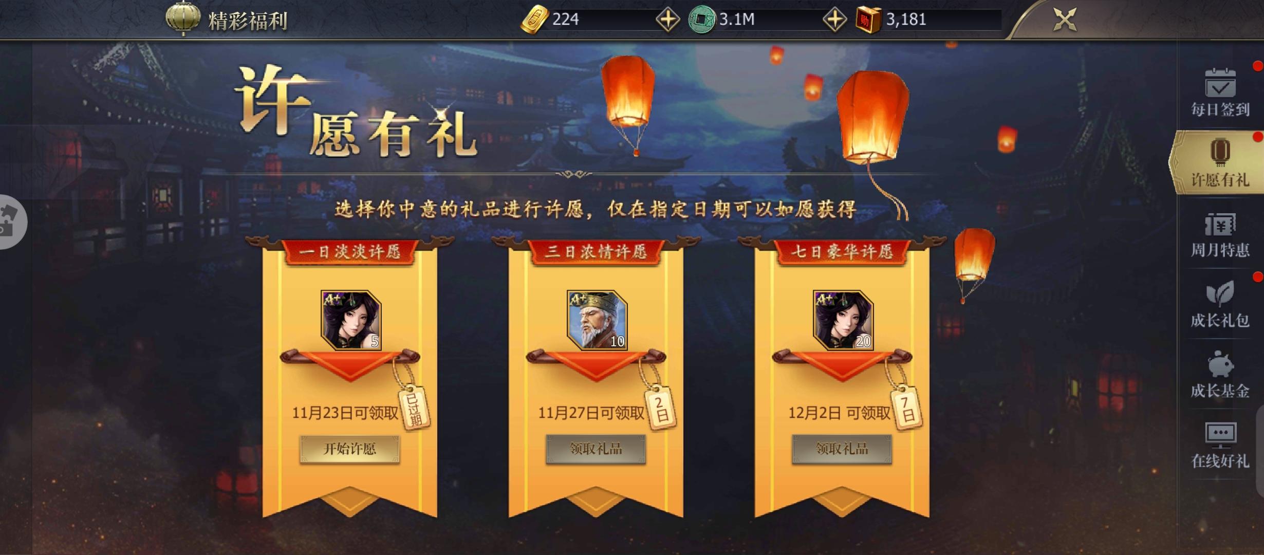 许愿有礼可以获得自己想要的武将,不过得需要等