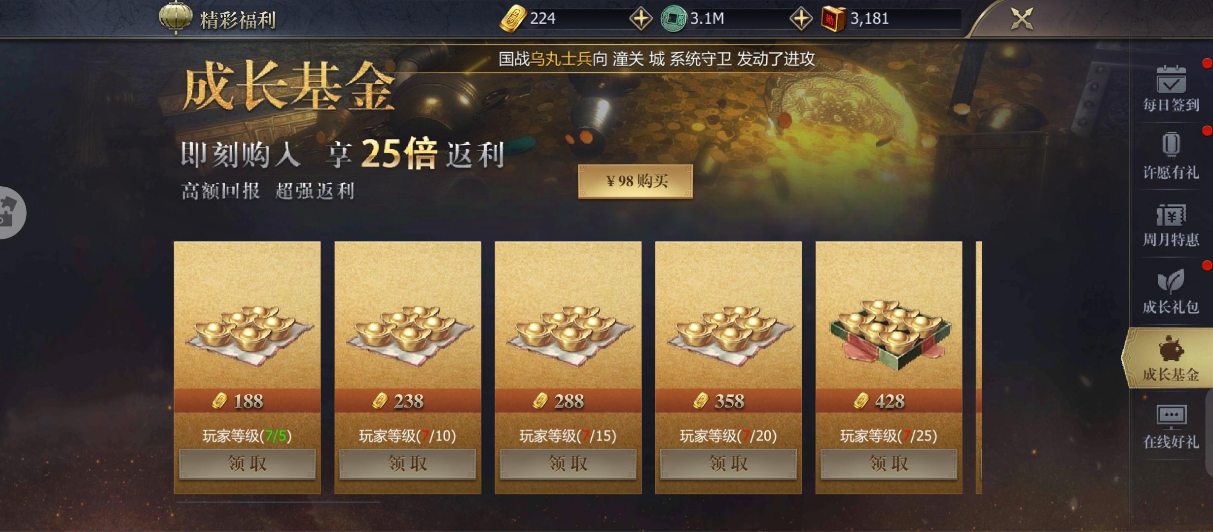 有能力且打算长期玩的玩家可以买一下成长基金,物超所值