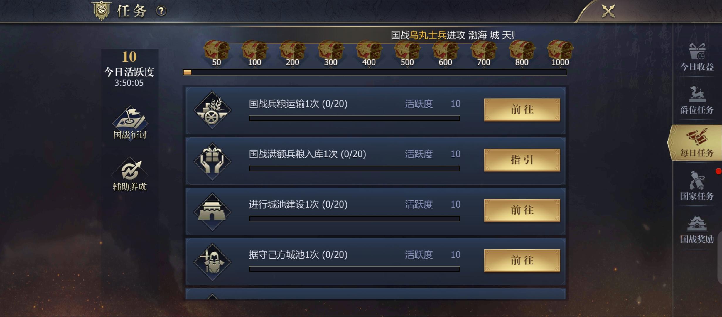 每日任务活跃度达到300可以进行兵粮调出,活跃度达到1000可以联系客服领取礼包