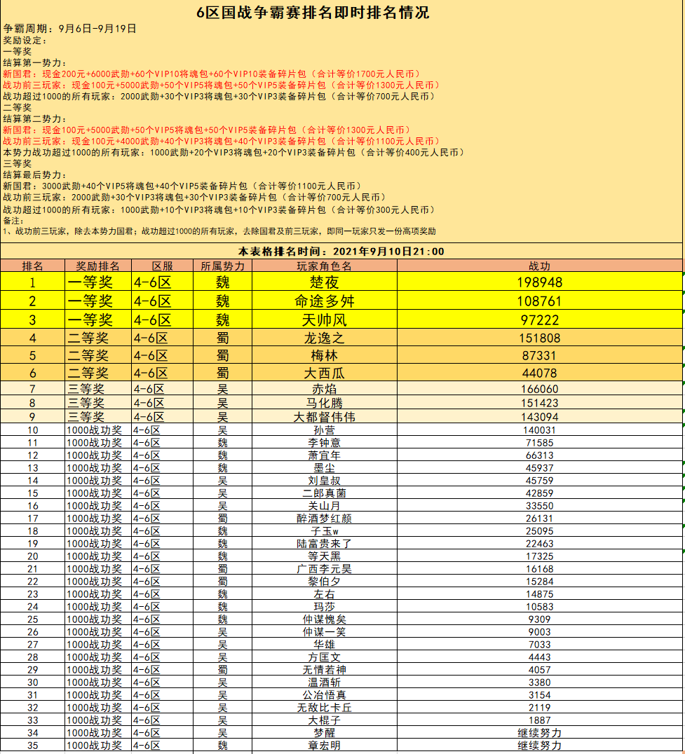 6区 国战现金争霸赛火热进行中(截止到9月10日21:00)