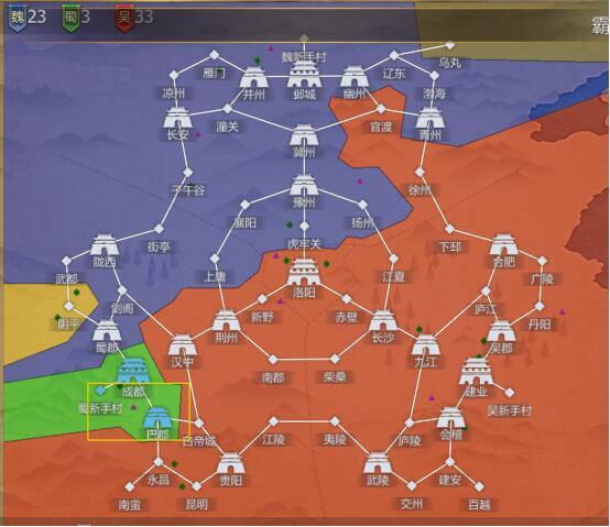 2023年3月10日星期五 蜀国昨日守【成都】拿【巴郡】,今日同样的套路:先拆到0级城防,抢占边门让对方中军无法据守,两个回合拿下【白帝城】。晚上守打【永昌】,拿【贵阳】边门,明日拿下【贵阳】,【江陵】或【昆明】可以切断【永昌】补给。但一日一城着实有点慢,赛季马上结束了。 吴国今日【白帝城】失守退守他成,但其实【洛阳】路线是通的,可拿【剑阁】【蜀郡】继续打蜀国都城【成都】。 条条大路通罗马,