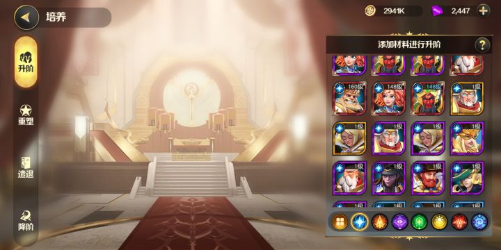 首先想说一下玩过此游戏的看法,之前很久玩过类似游戏,是什么就不说了,里面暗光最盛,其他种族后期大后期都不太行,而光明领主里人物类似,但也有自己特色在,尤其联动和出了很多新英雄,玩这款游戏不能和某征相提并论,不过是否为割韭菜大家仁者见仁智者见智,当然中氪大氪神氪就当无视。通关阵容有很多,大致以高品阶,高等级,高装备人物为主要阵容,在摸索度过前期,且有一定人物支撑时再论阵容,同属性英雄上场都有加成生