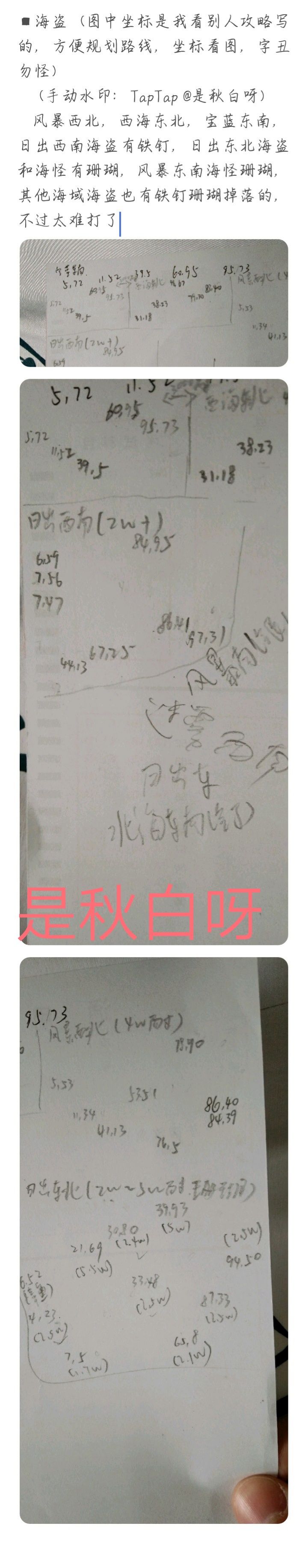 游戏通关之后我就想搞全先民结果太缺铁钉了,根本升不动船舱。于似乎我打算去抢海盗和海怪的铁钉。海怪一年才刷一次产量还那么低,重心自然而然的放在了海盗船。这下你知道谁是海盗了吼?!铁钉 风暴西北西海东北(85,40)北海西南(15,58) (31,57) (66,64) (94,85) (76,83) (95,17) 东南(76,16) (62,36) (41,78) (44,36) (20,5