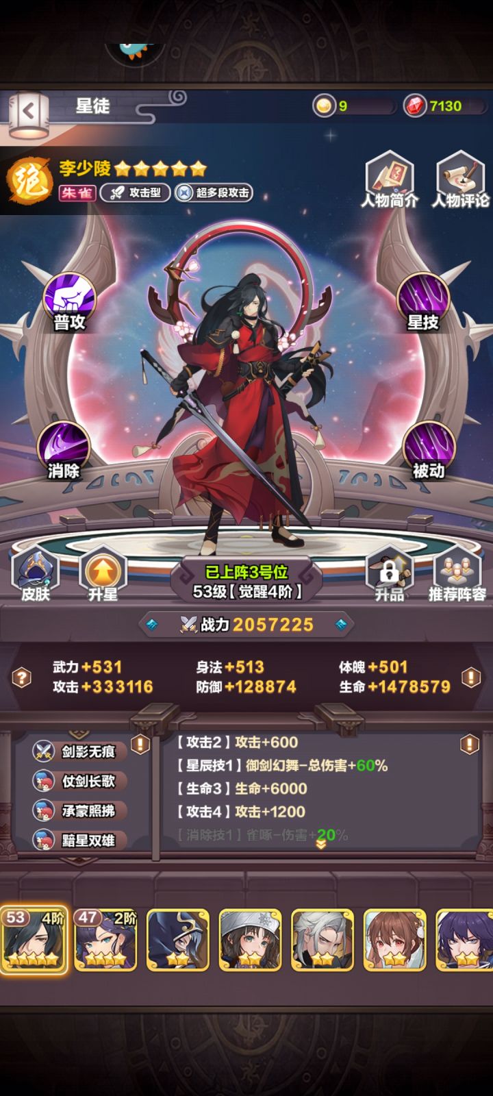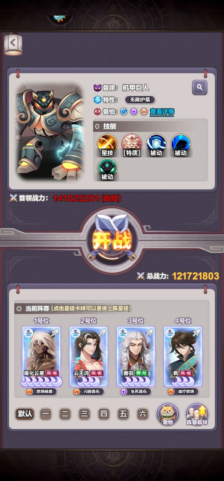 萌新如果想玩的好的,听我一句建议,真心别看攻略说均衡养,不然养到后面你可能啥都打不过不说,还巨缺资源, 我就氪了300左右,随便越战打那些四百多万的(榜一氪了几千的魔云队,我打他也有赢率),用的你们觉得最垃圾的李少队, 我只想说句,你们说的魔云队,毒队,燃烧队,你们星升的起来? 本体好拿? 尤其魔云队的云天鸿,平民压根养不起,李少辣鸡么? 或许同样养成是辣鸡,但是他好换碎片啊(摊手),而且李少搭配好了闪避流凭啥差? 反之燃烧队必须均衡来说,李少队极限李少一个不香? 那个攻略写的不错,阵容思路可以,但是还是那句话,不推荐均衡养,极限一个资源砸核心会强很多!