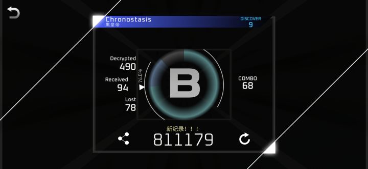 读谱一开始确实不习惯,不过玩了一会儿后至少四面下落的散点能接上了,或许是因为有Arc底子吧;另外音押比目押轻松得多。16的这个谱面感觉很惊艳(能这么说吗),空间下落的note糊脸压迫感很强,能从中看到无限可能性(指被更多花里胡哨的谱面目害十分期待更多更好的谱面