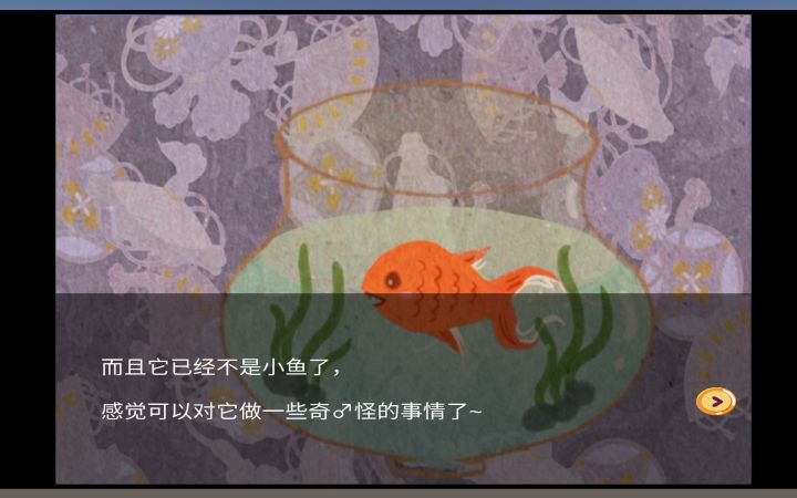 啊呀,一不留神就玩完了。我一次也没有选择吃掉它,既然是宠物,就让它只是宠物好了。而且据说被吃掉的鱼儿怨念很强大,唔……搞得我对吃鱼PTSD了,已经很少吃鱼了。所以这个游戏里,到最后也没有选择吃掉它。如果可以自己写结局,我就会找宠物遗体处理师,将鱼悠悠的尸体处理成标本,然后放家里。反正我是个会和鱼说话的怪人,没关系,对着标本说话也不奇怪。
