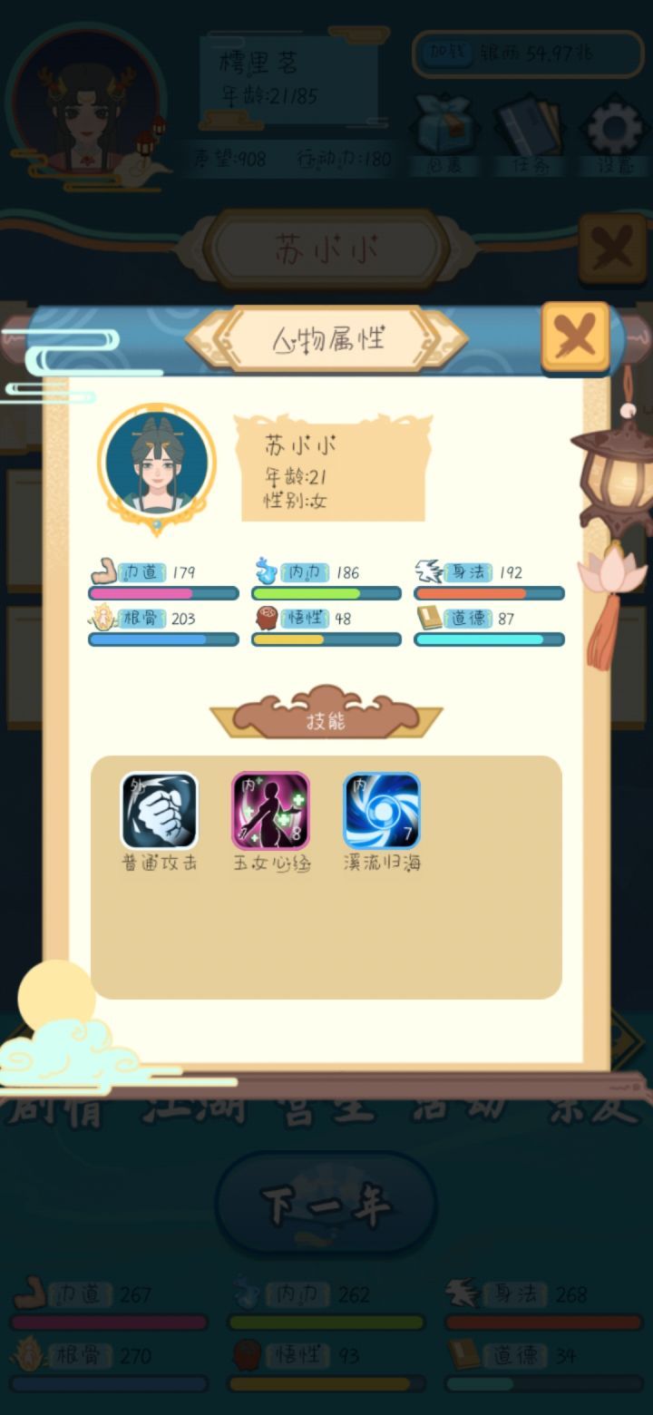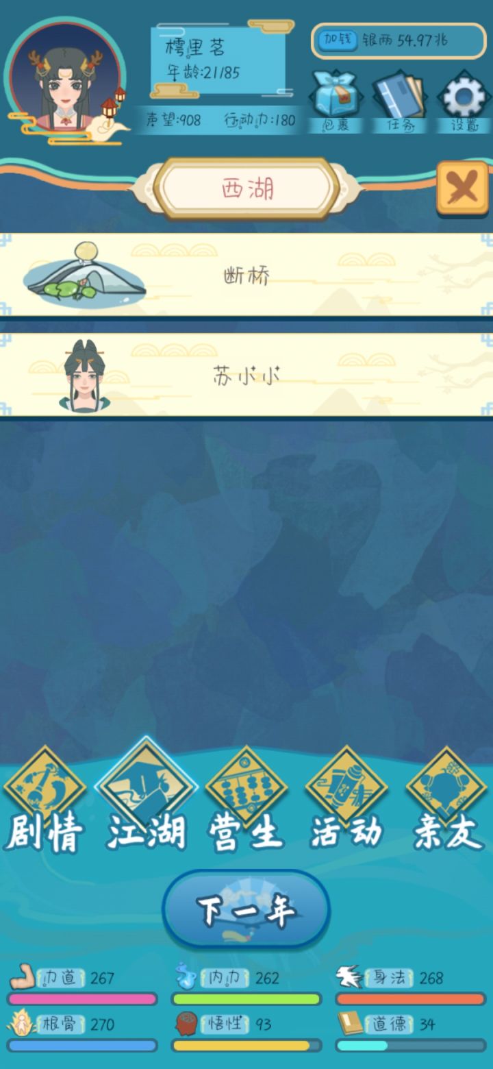 技能:溪流归海携带npc:苏小小npc出现要求:完成快马加鞭任务7