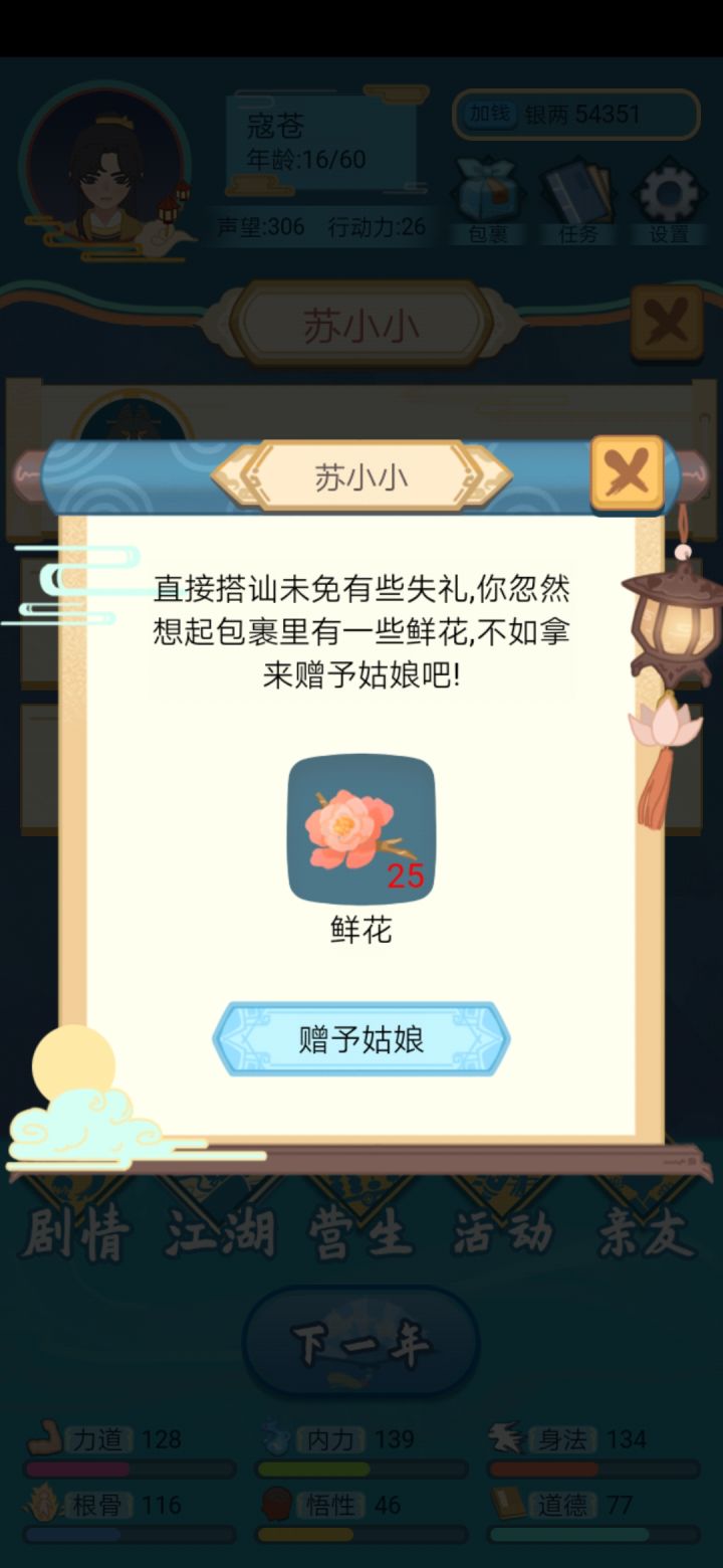 移花接木打一切,可惜只能女性才能学。去找无花,送25个鲜花就能加好友。学习移花接木,暴打所有黑衣人。男性就不能了,被黑衣人打。