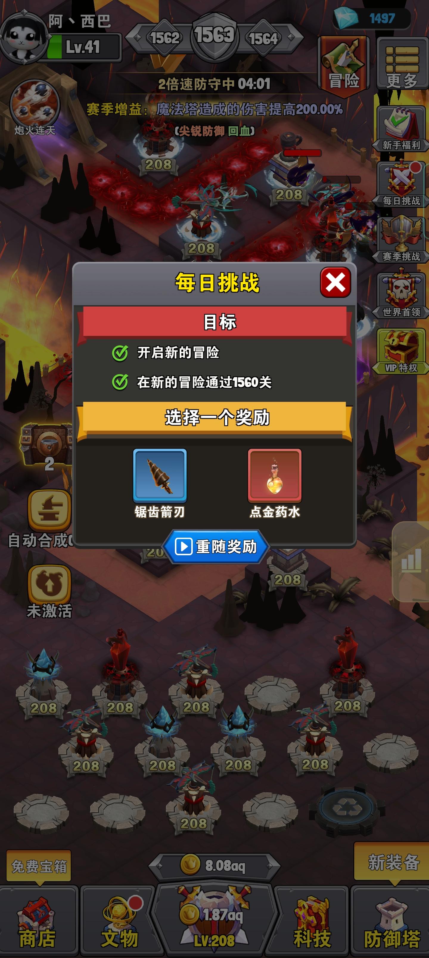 继续许愿 剧毒药膏,目前六万多层。好不容易飞轮红了,想转型玩玩炮塔。😈😈