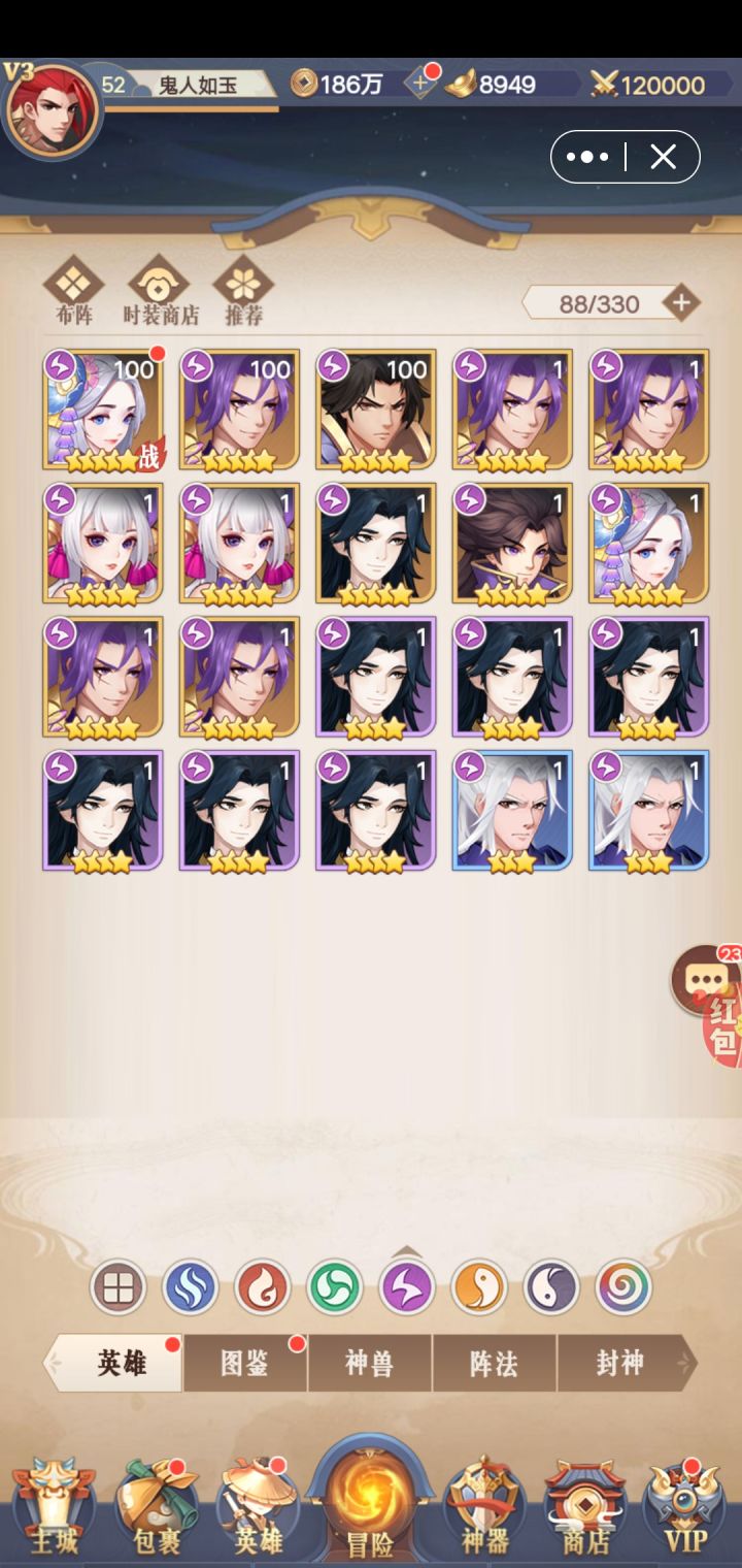 老区遇到杠精,表示零氪不可能过隐藏,所以新区开荒,顺便给大家出个攻略做参考。第四天80级的时候,开新活动,皇陵迷宫。迷宫奖励还是不错的,固定给大概3万左右的阅历,1000左右的神石精华,一百万的铜币,运气好的伙伴还能得到一些英雄碎片加三四百元宝。楼主今天估计到不了80级,因为进区晚半天,不过问题不大,如果有小伙伴零氪想要到80级,一定要找个早上开的区,及时进去。第四天,今天打完宝石以后,所