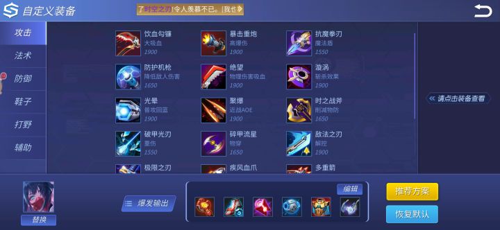 Adc第一件极限之刃,这玩意在无限火力是好东西但我看到没有什么人出,因为在后期对面刺客输出满了,也不差这一秒,对面刺客三级抓你的时候,一套是打不死的,要和他队友补伤害,如果你没死,极限之刃可以保你用闪现回到塔下。第二件漩涡,唯一一个打伤害的,对面刺客突脸,你一套技能打下去加极限之刃苟一会,最少能换。第三件复活甲(然后什么时候复活甲CD了再买)。第四件救赎,这个装备配极限之刃,特别好用,CD