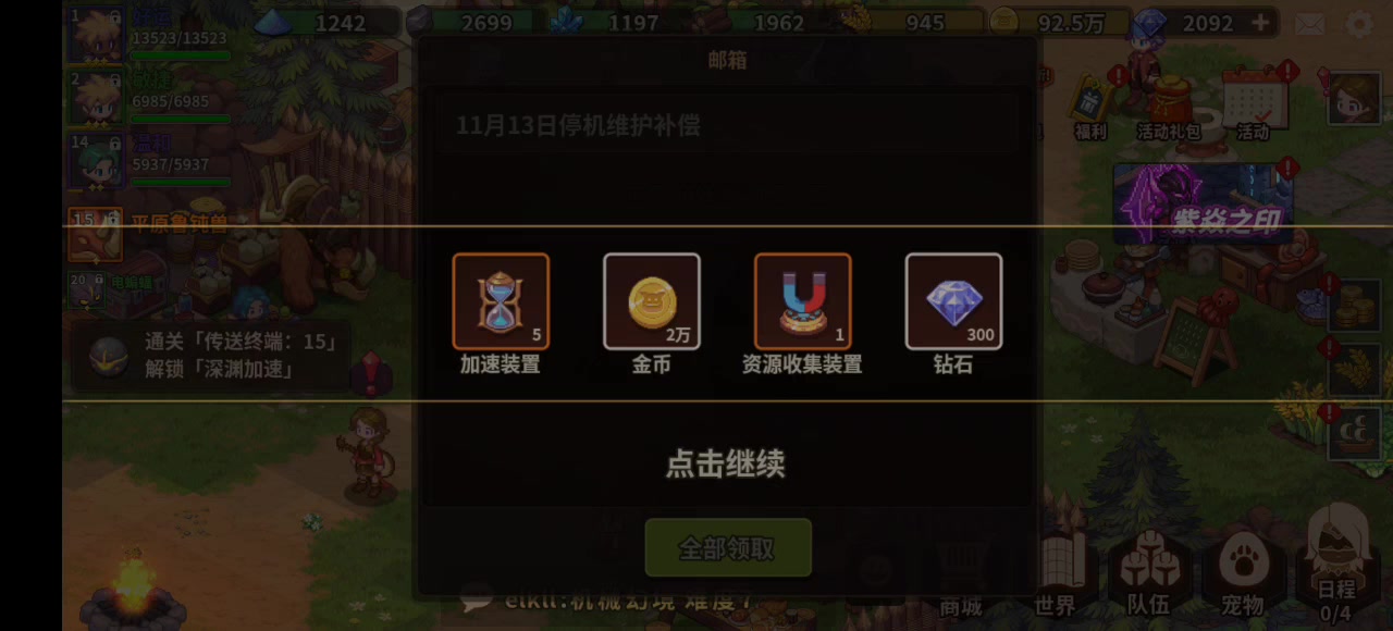 〔导航〕规则 & 视频目录: https://www.taptap.cn/moment/734386085412473032 - 领奖励 - 升基建 - 周常 - 篝火没材料所以没补(正常要凑 4000) - 卡池商店换一抽 - 竞技场换宝石、概构 中期缺强化石可以酌情换 后期代币充裕再换油漆 - 联盟商店换渔网,卡牌、宠物置换板 这号暂时没联盟(规则限制) - 狂潮换自选矿、锤子