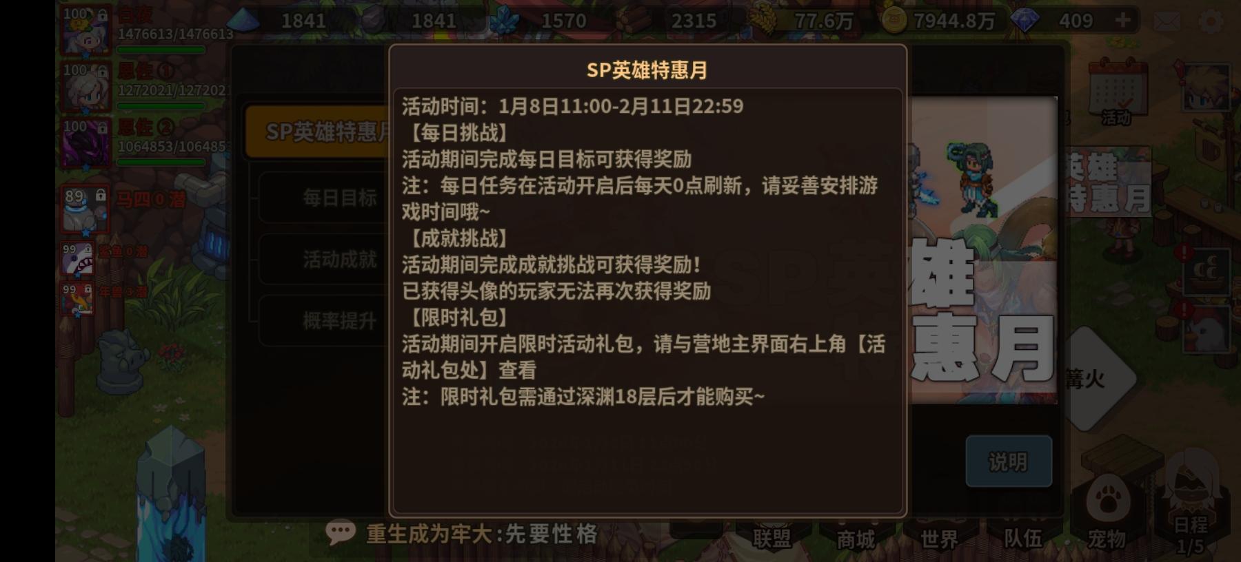 阿巴阿巴阿巴,什么持续一个月?什么骗氪?听不懂,我一点也听不懂(此人已疯已痴呆).01-08 到 02-11 持续一个月 sp 批量复刻坏消息是不送 sp,好消息是送俩性药比 sp 贵更好的消息是性药刚好留给春节自选 sp 用.〔氪金建议〕能不氪就不氪* 免责:下面的氪金建议只针对 预算充裕 + 强烈氪金欲望的玩家.以防你真忍不住了想氪点什么的话前期只考虑春水,别的都不质变